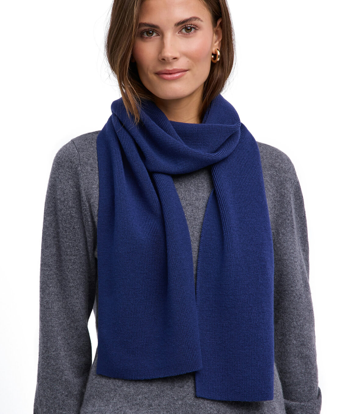 Зимний шарф выполнен из тончайшей шерсти мериноса. Концы с тонкой ребристой текстурой делают дизайн изделия особенным. Размер шарфа 170х30 см.