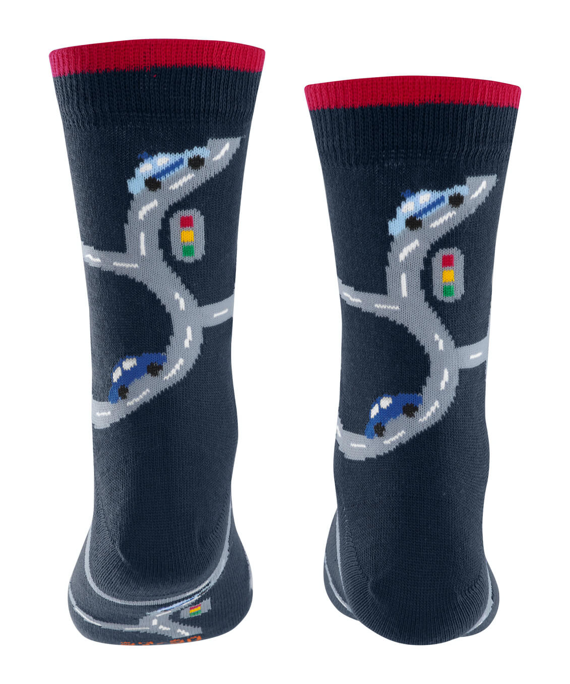 Берегись автомобиля! Дизайн этих носков с рисунком по всей поверхности вдохновлен популярными узорами детских ковров с дорожным движением и машинами. Контрастные манжеты гармонично дополняют дизайн. Приятный на ощупь органический хлопок и идеальный крой FALKE обеспечивают комфорт и оптимальную посадку.