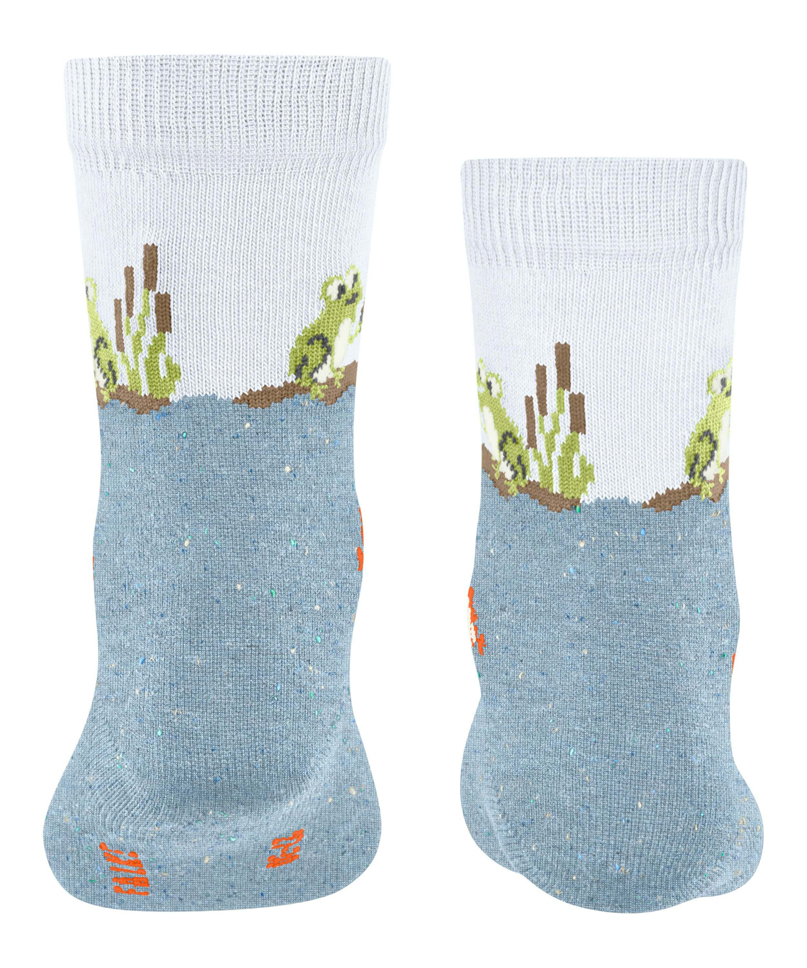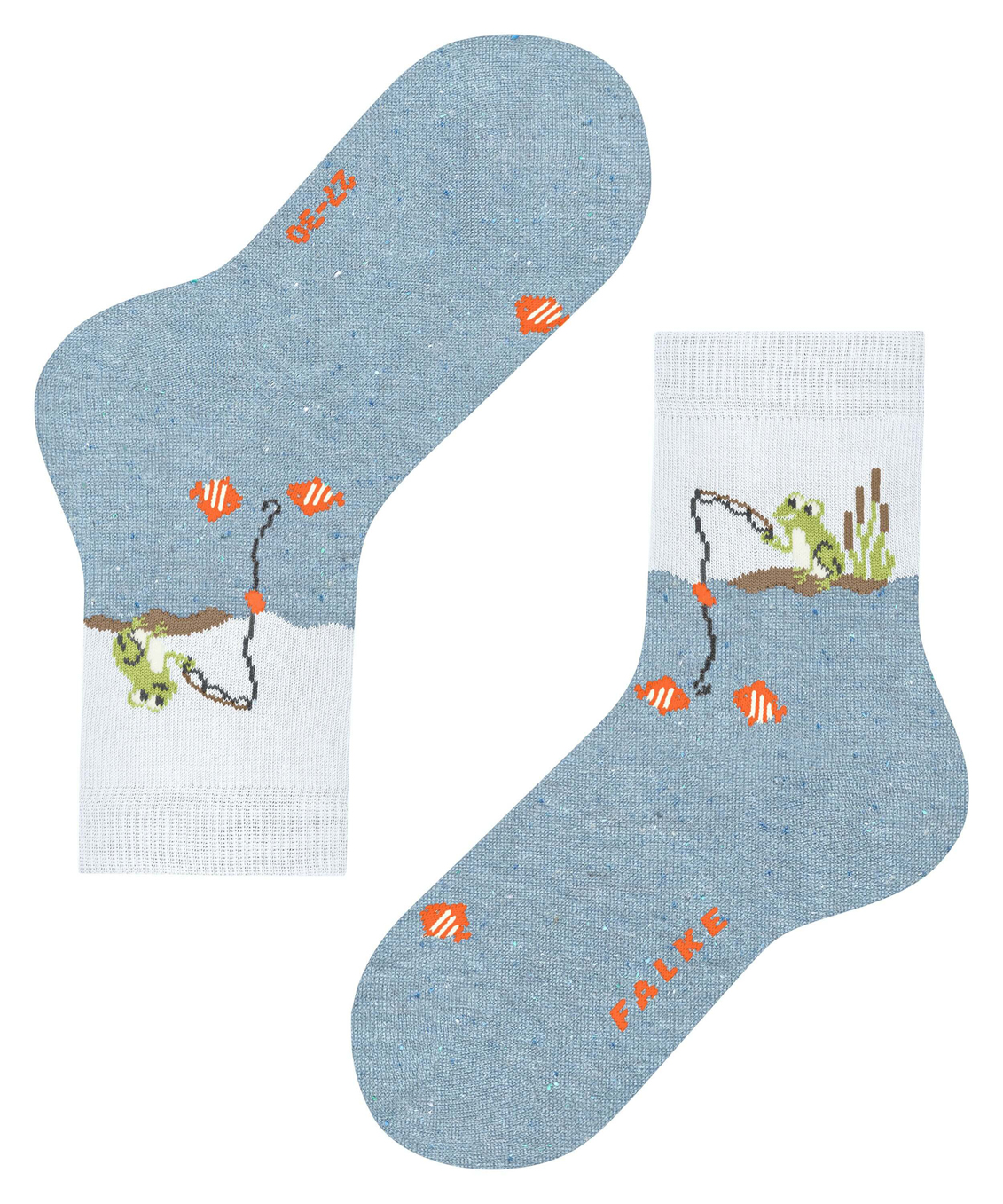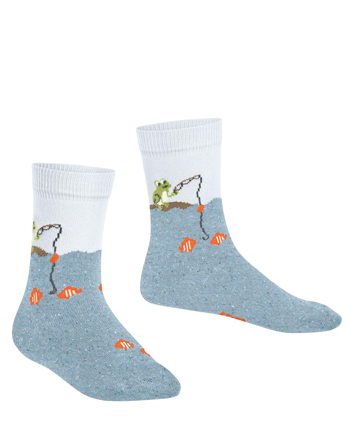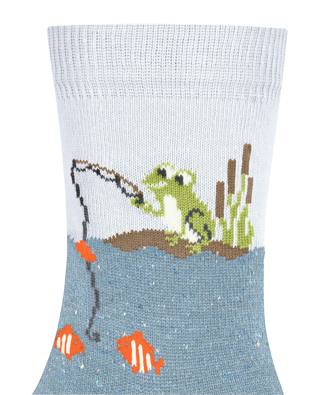 Незаменимый аксессуар для маленьких любителей рыбалки. Дизайн с изображением милых лягушек-рыбаков. Вода, в которой плавают рыбки, выполнена из специальной твидовой пряжи. Оптическое деление позволяет сделать дизайн еще более привлекательным. Приятный для кожи материал на основе экологически чистого хлопка и идеальная посадка FALKE гарантируют комфорт во время носки.