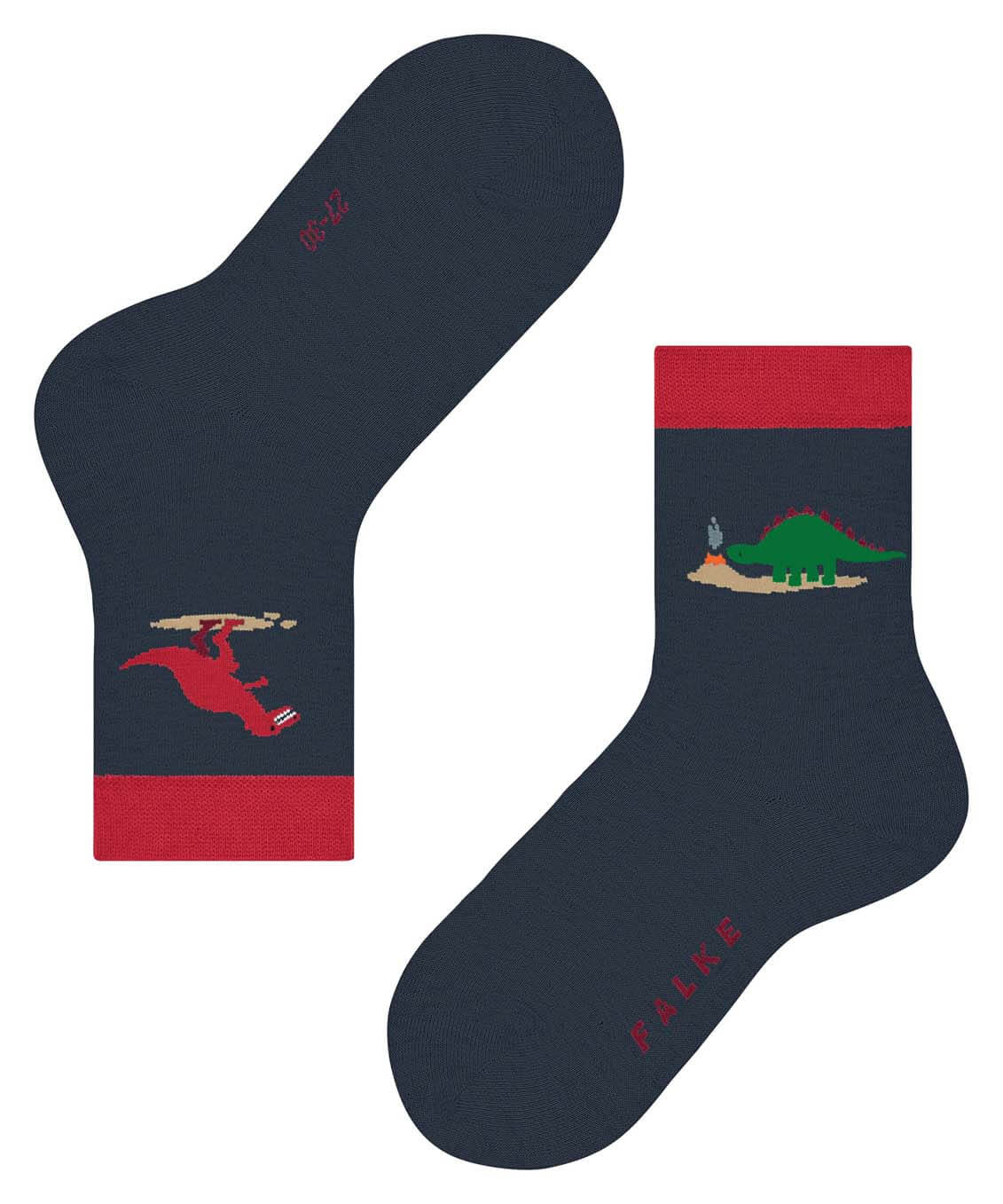 Детские носки FALKE украшены рисунком с динозаврами на фоне захватывающего вулканического пейзажа. Идеальная посадка FALKE и приятный для кожи экологически чистый хлопок обеспечивают высокий уровень комфорта во время носки. Фишка дизайна: изображения, размещенные сбоку, показывают динозавров перед извержением вулкана и во время него. Контрастные манжеты лаконично дополняют внешний вид изделия.