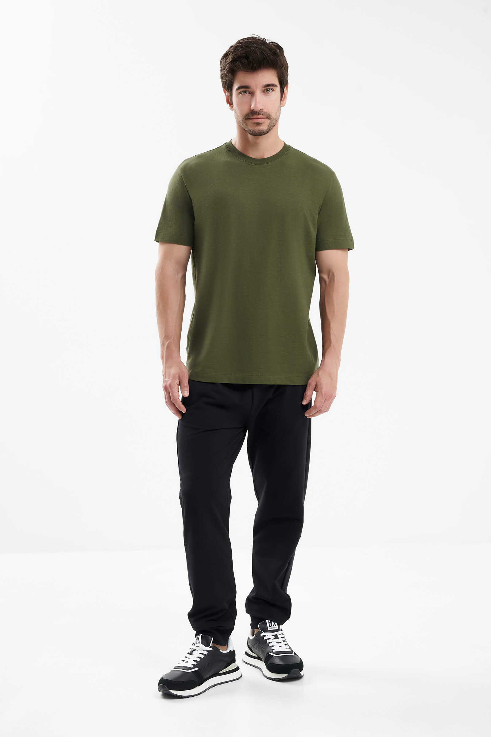 Кожаные кроссовки с замшевыми вставками