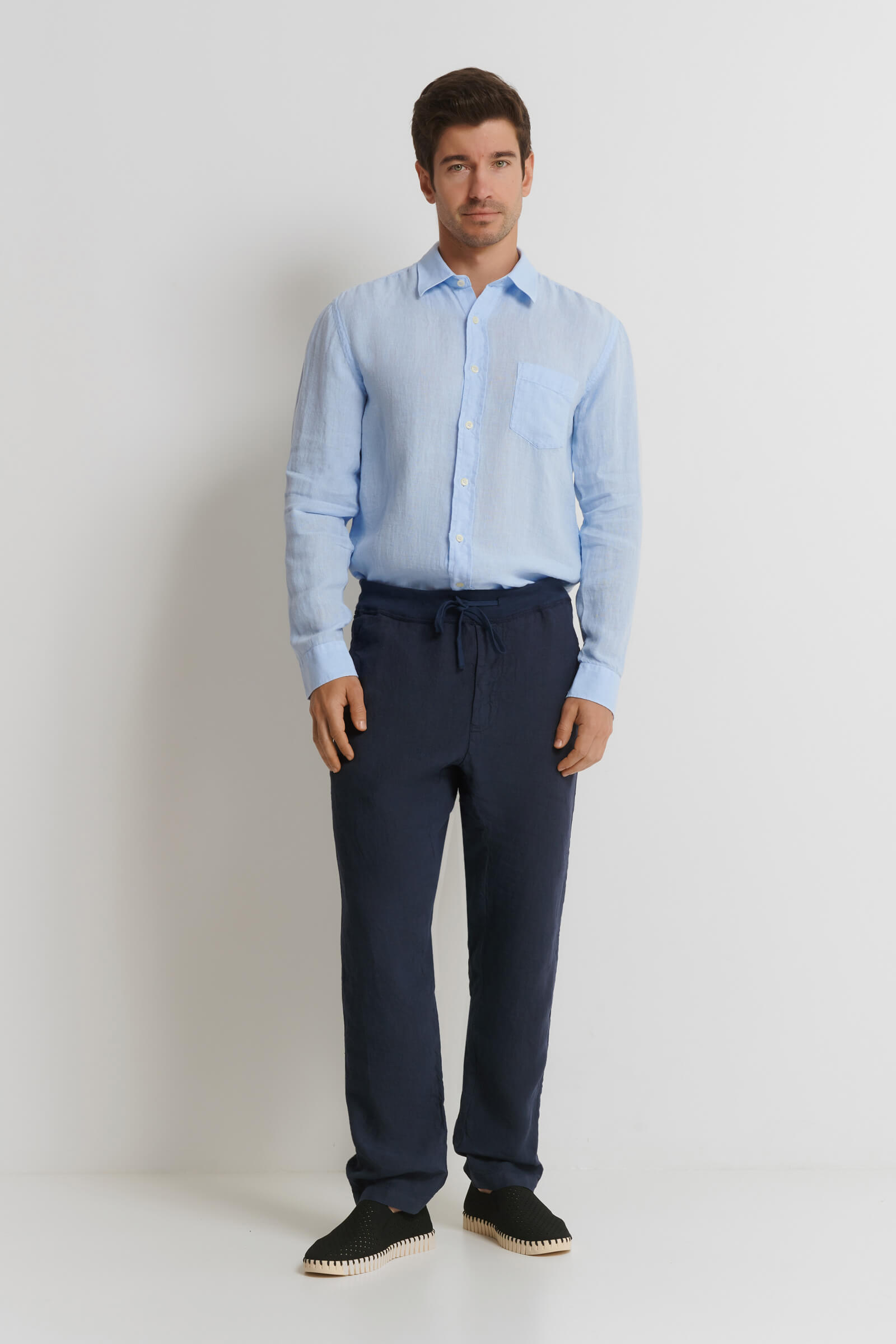 Прямые брюки из 100% льна на резинке