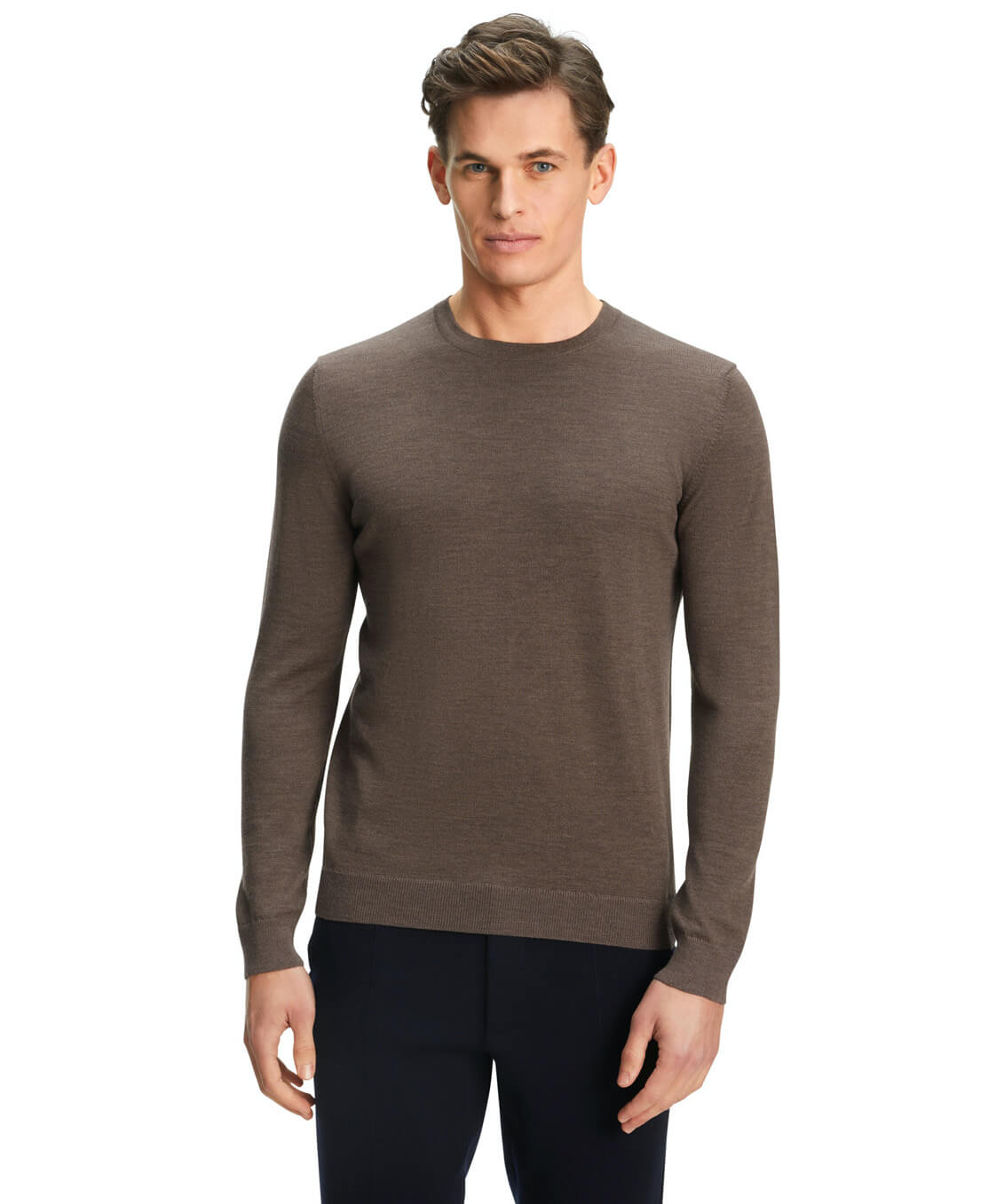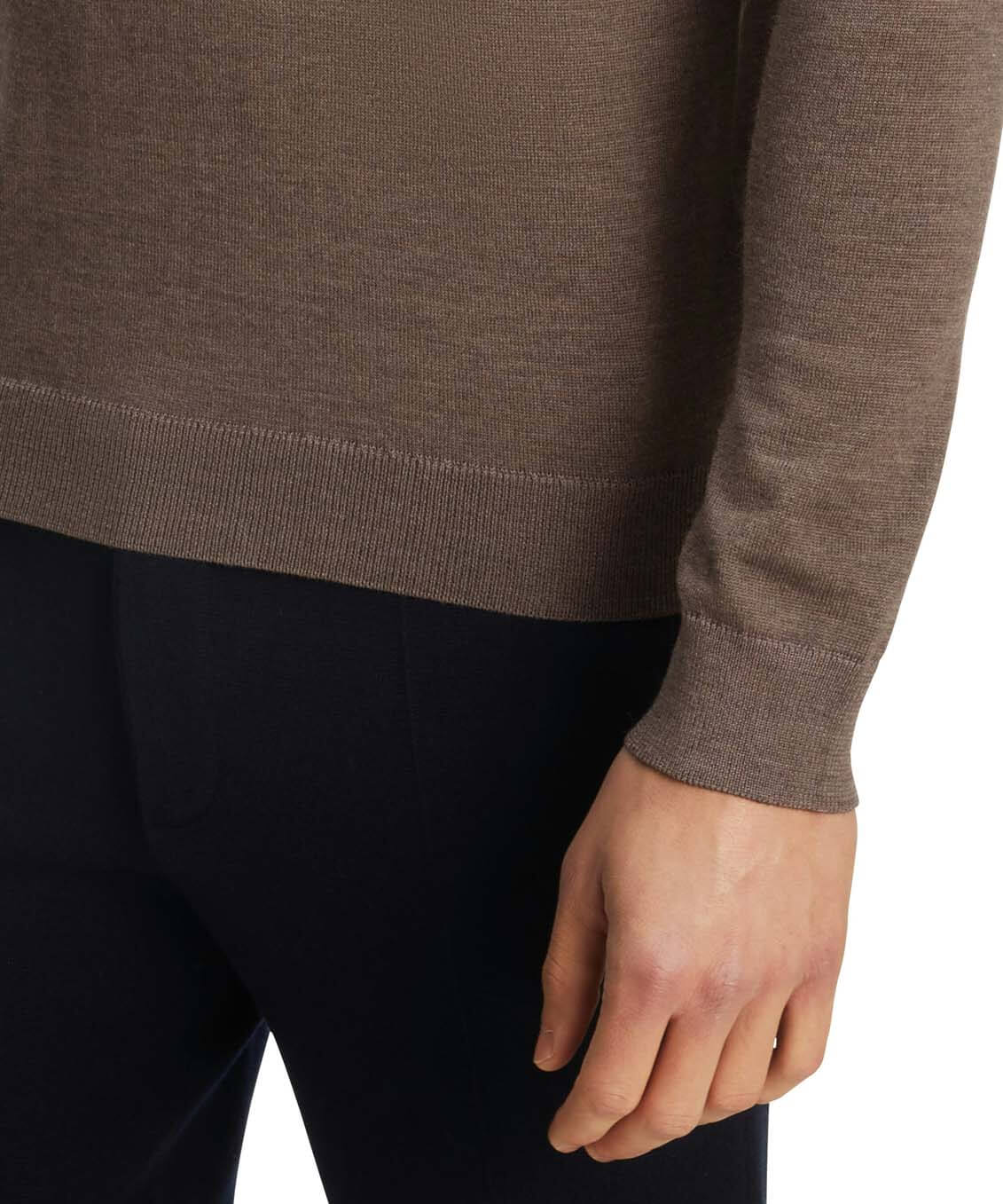 Классический базовый джемпер с круглым вырезом из ультратонкой шерсти мериноса. Великолепное тонкое джерси не требует особого ухода и очень приятно на ощупь. Французские швы на плечах и мелкий рубчик по линии выреза, по подолу и на манжетах дополняют это классическое изделие. Сочетайте с футболкой или рубашкой для создания актуального повседневного или делового образа.