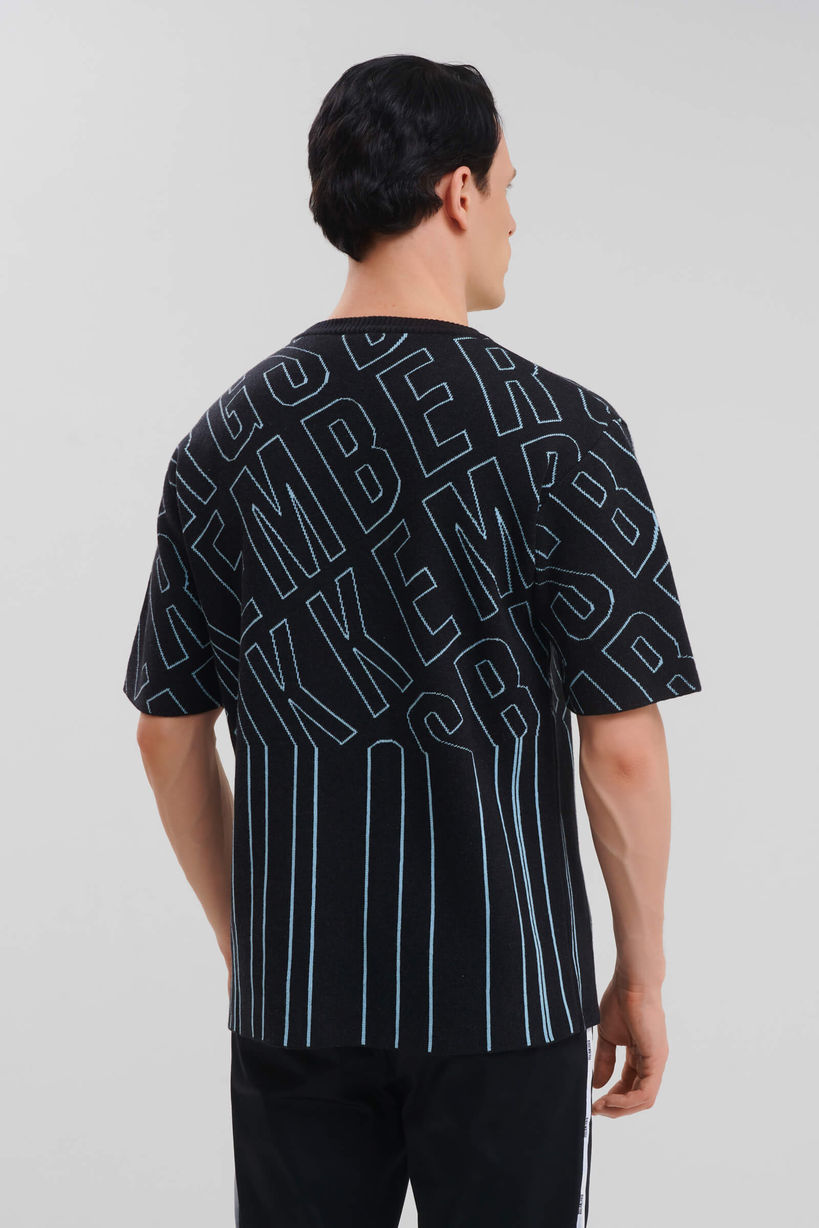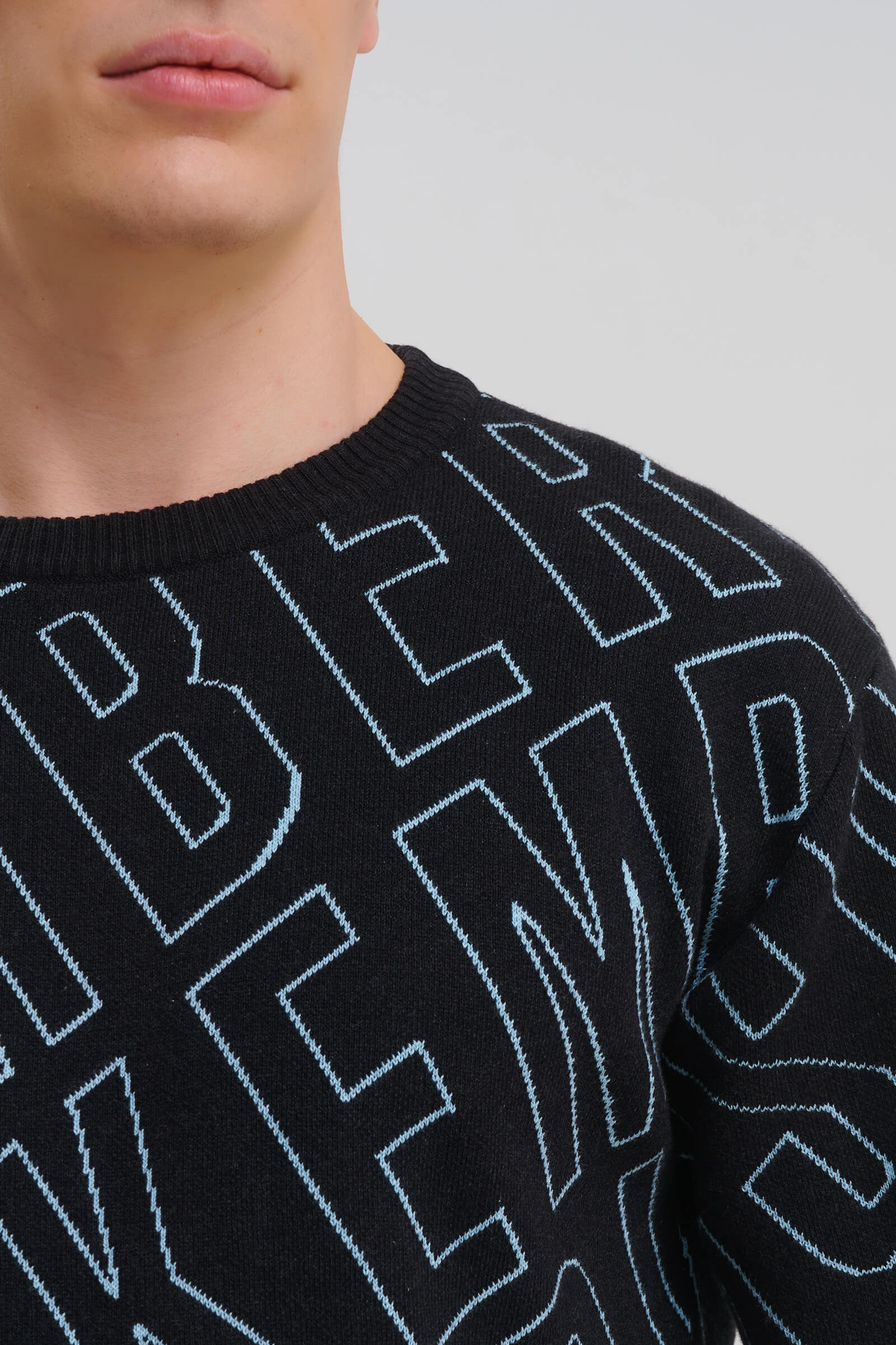 - Жаккардовый узор, который выделяет логотип в городском стиле по всей поверхности изделия
