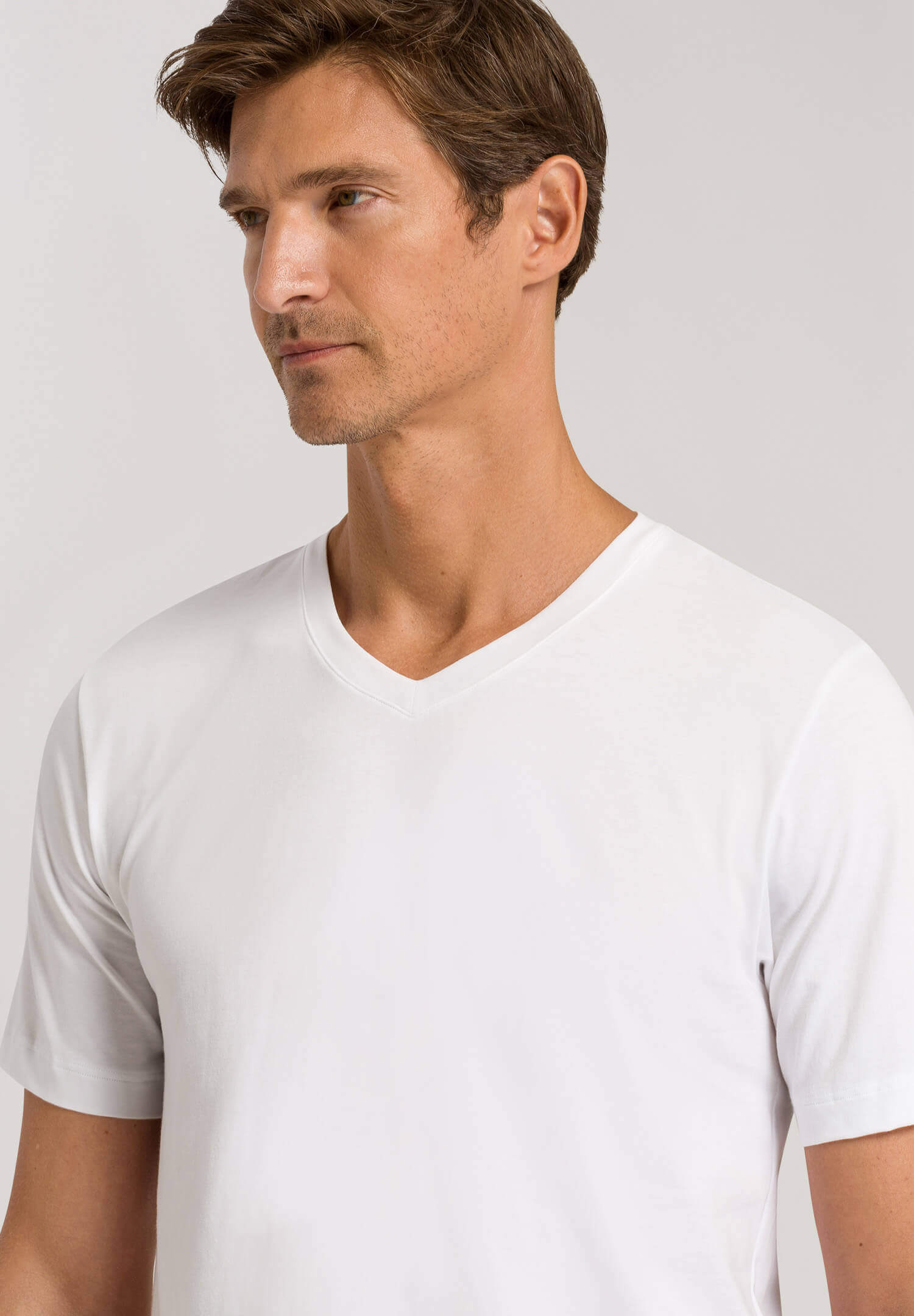 Коллекция Living от HANRO — это базовые и модные изделия, которые непременно должны стать частью вашего гардероба. Универсальный стиль подойдет как для отдыха или работы дома, так и для путешествий и активного образа жизни. Бесконечные возможности для сочетания изделий между собой. Белье и одежда из этой коллекции прекрасно подойдут в качестве нижнего слоя. Футболка с коротким рукавом и V-образным вырезом выполнена из непрозрачного однослойного хлопкового джерси для комфорта и мягкости. Изделие можно сочетать с любым образом.