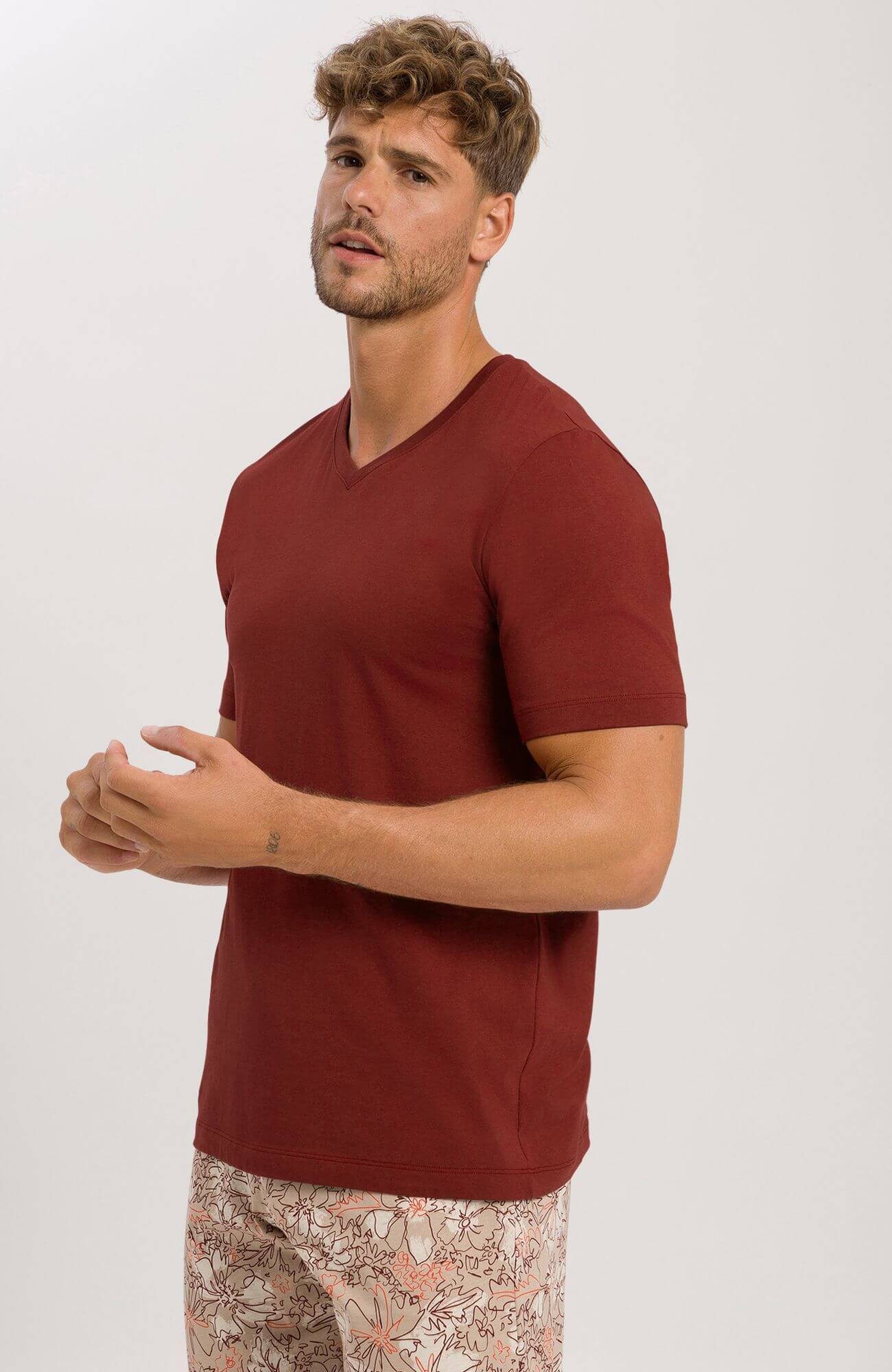 Коллекция Living от HANRO — это базовые и модные изделия, которые непременно должны стать частью вашего гардероба. Универсальный стиль подойдет как для отдыха или работы дома, так и для путешествий и активного образа жизни. Бесконечные возможности для сочетания изделий между собой. Белье и одежда из этой коллекции прекрасно подойдут в качестве нижнего слоя. Футболка с коротким рукавом и V-образным вырезом выполнена из непрозрачного однослойного хлопкового джерси для комфорта и мягкости. Изделие можно сочетать с любым образом.