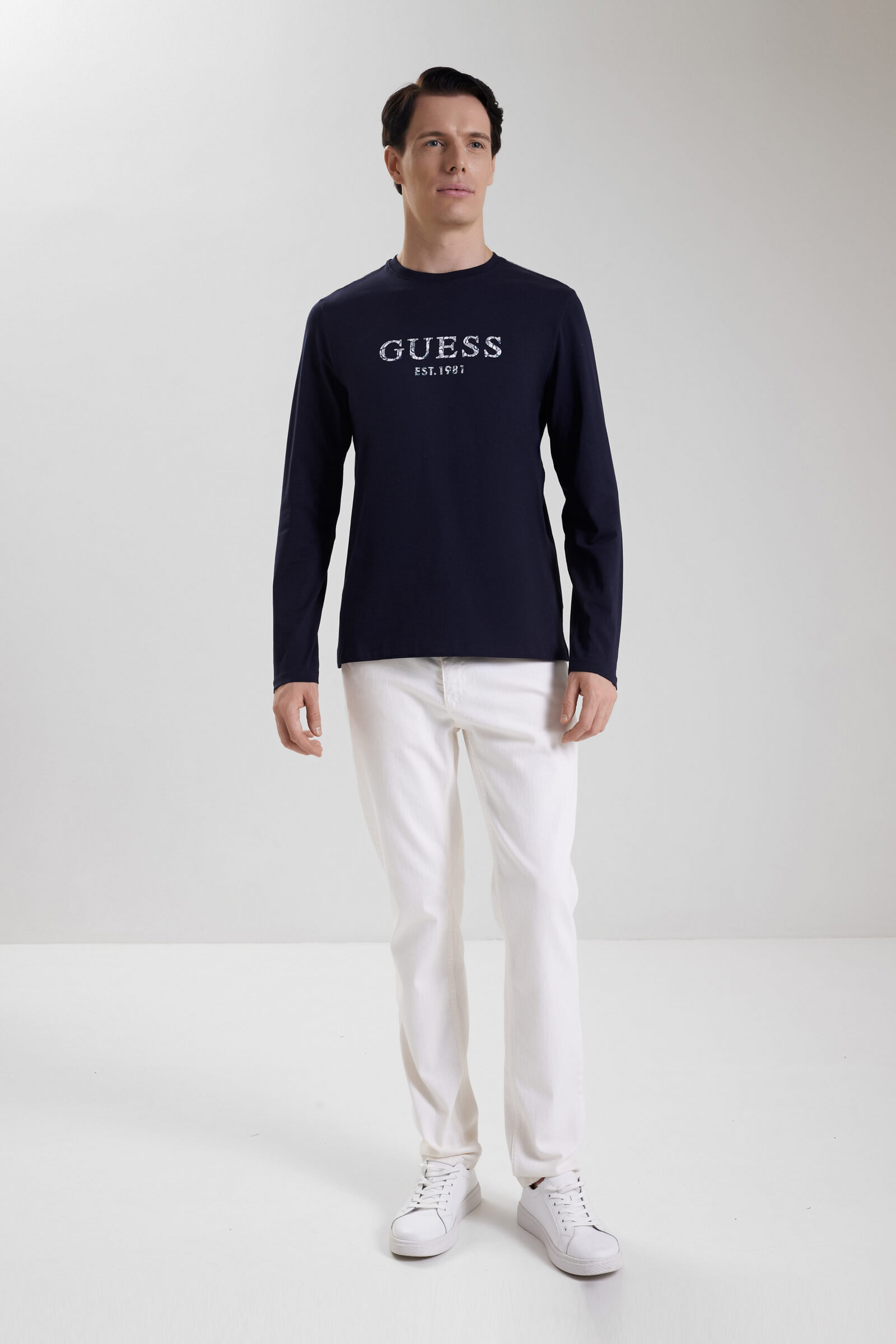 - Фирменный логотип Guess на груди