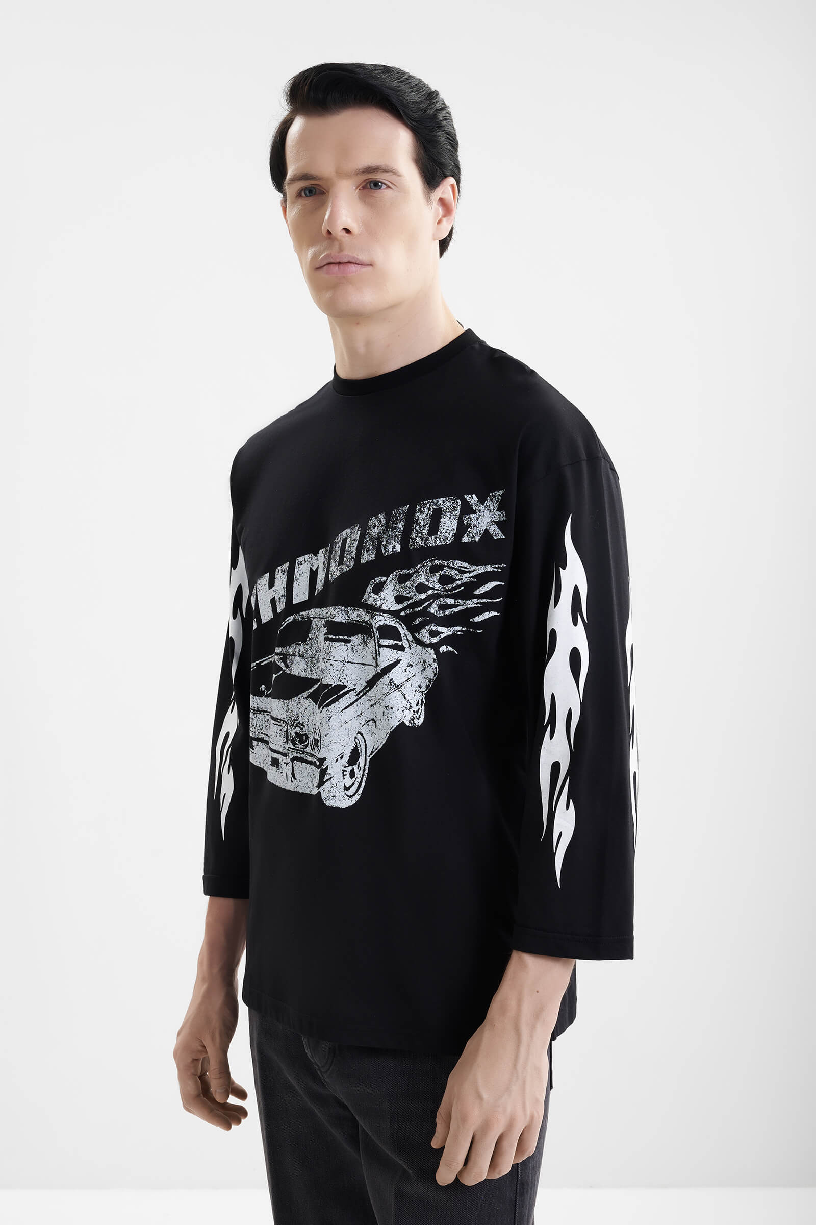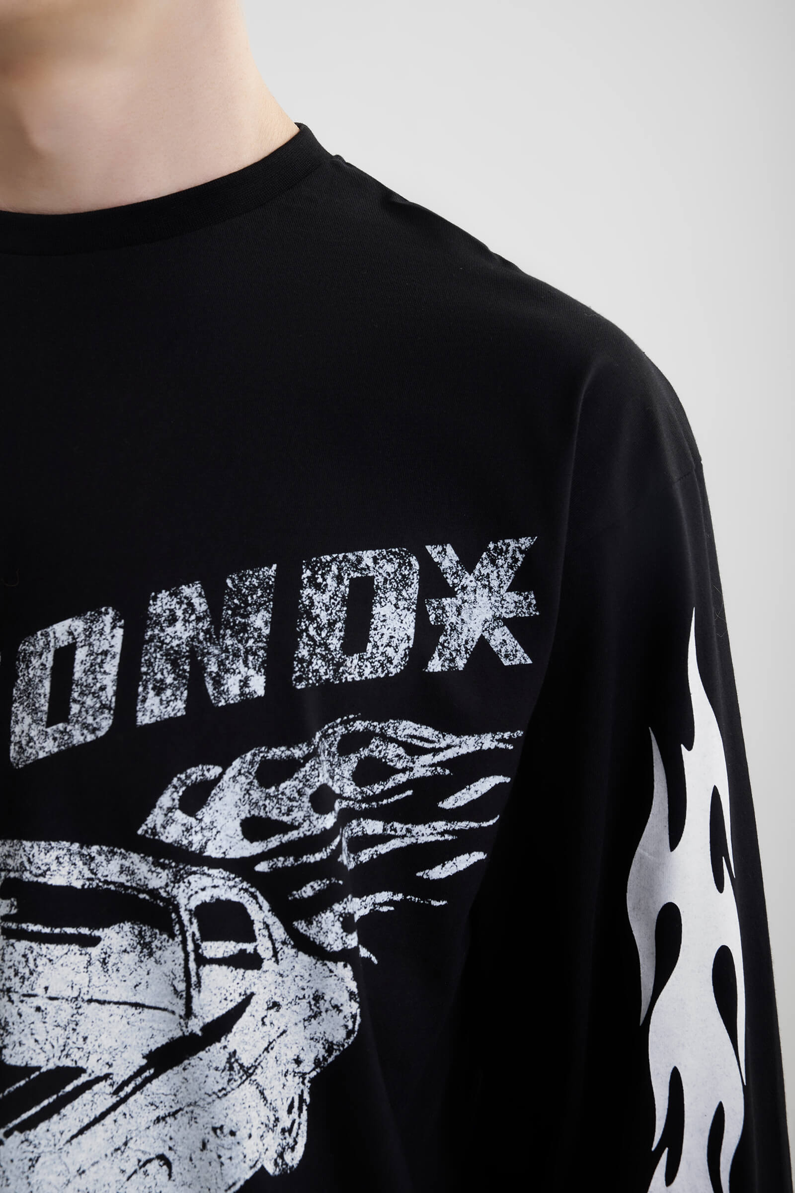 - Принт с языками пламени на рукавах