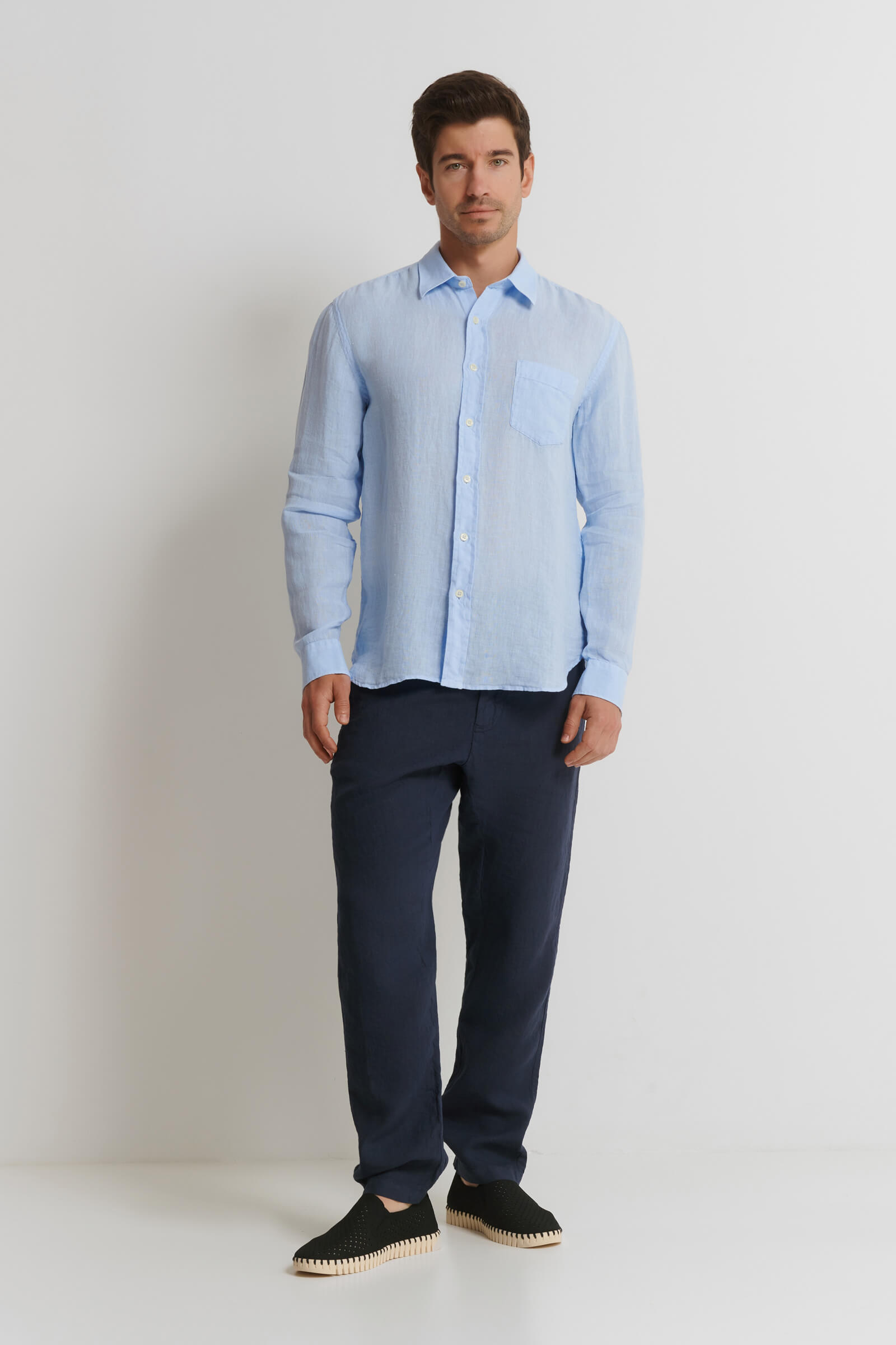 Рубашка из 100% льна с накладным карманом