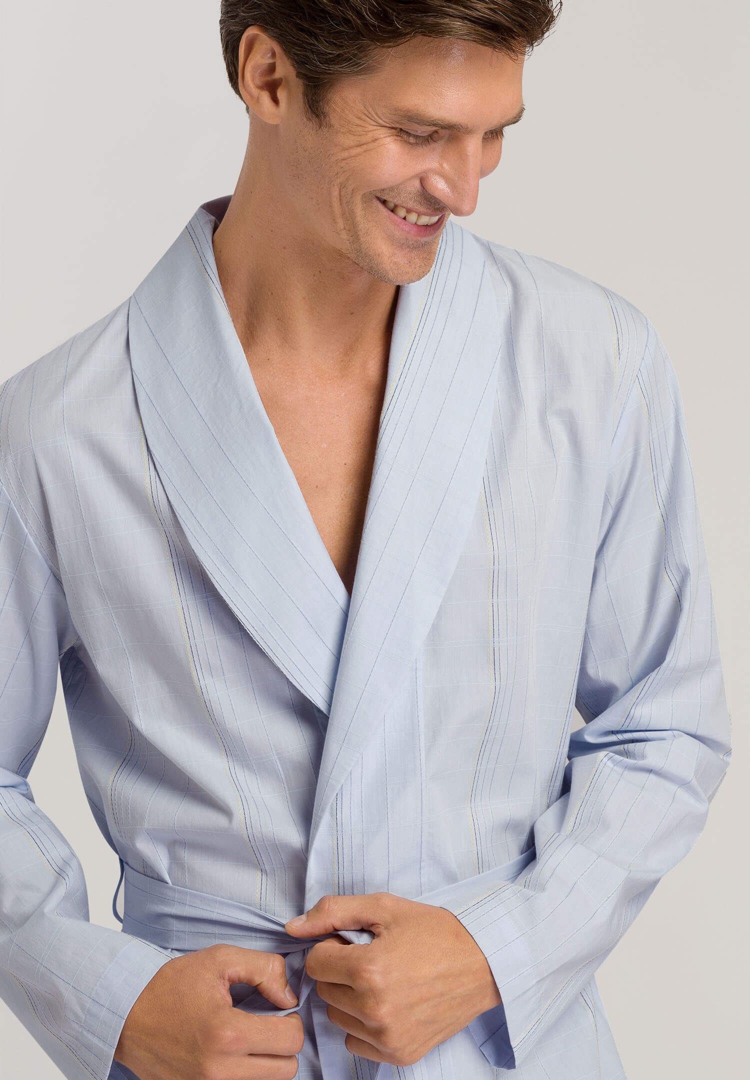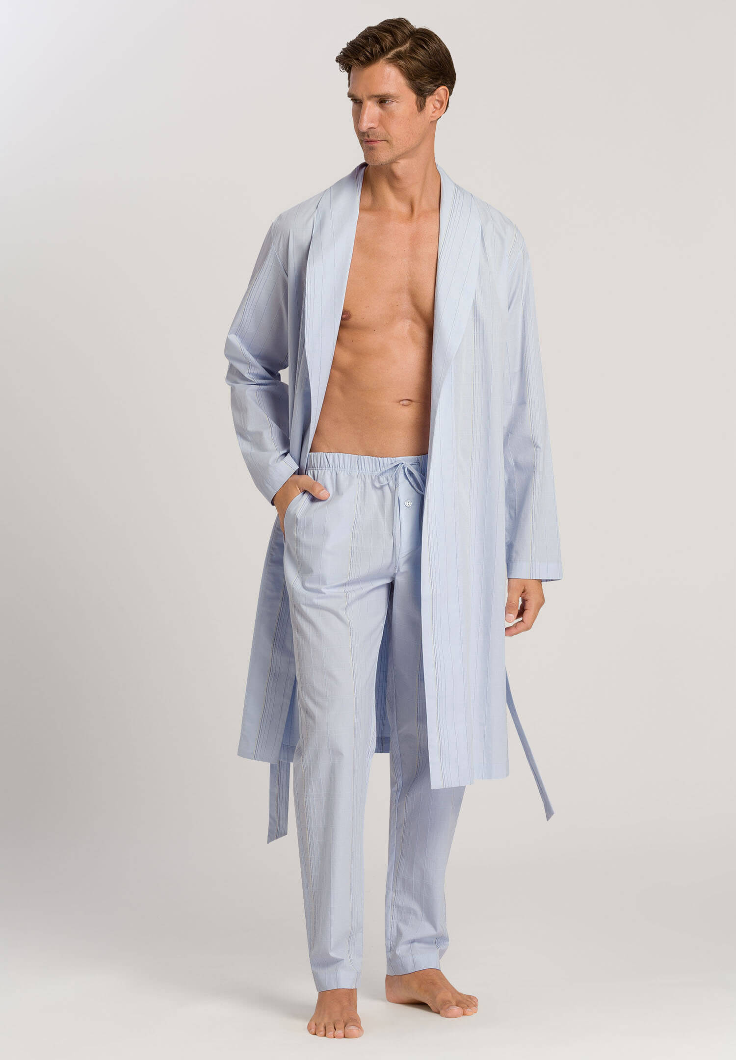 Халат из линейки Aurel выполнен из 100% мерсеризованного хлопка, очень мягкого и приятного на ощупь. Лаконичный дизайн с отложным воротником со скругленными концами выглядит элегантно и притягательно. Отсутствие пуговиц и молний обеспечивает индивидуальную посадку. Халат превосходно сочетается с брюками из той же линейки.