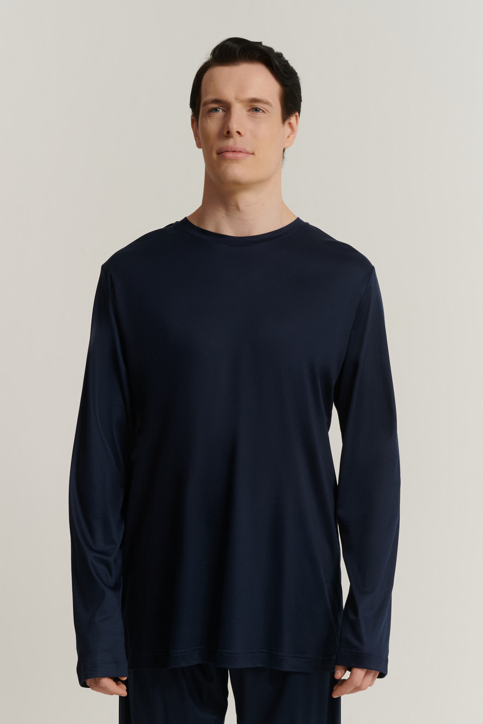 - Лонгслив с втачным рукавом полной длины и круглым вырезом