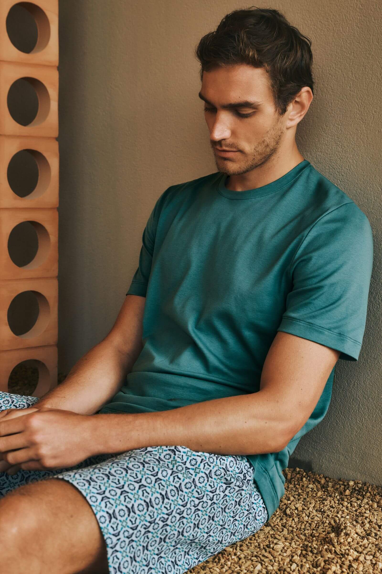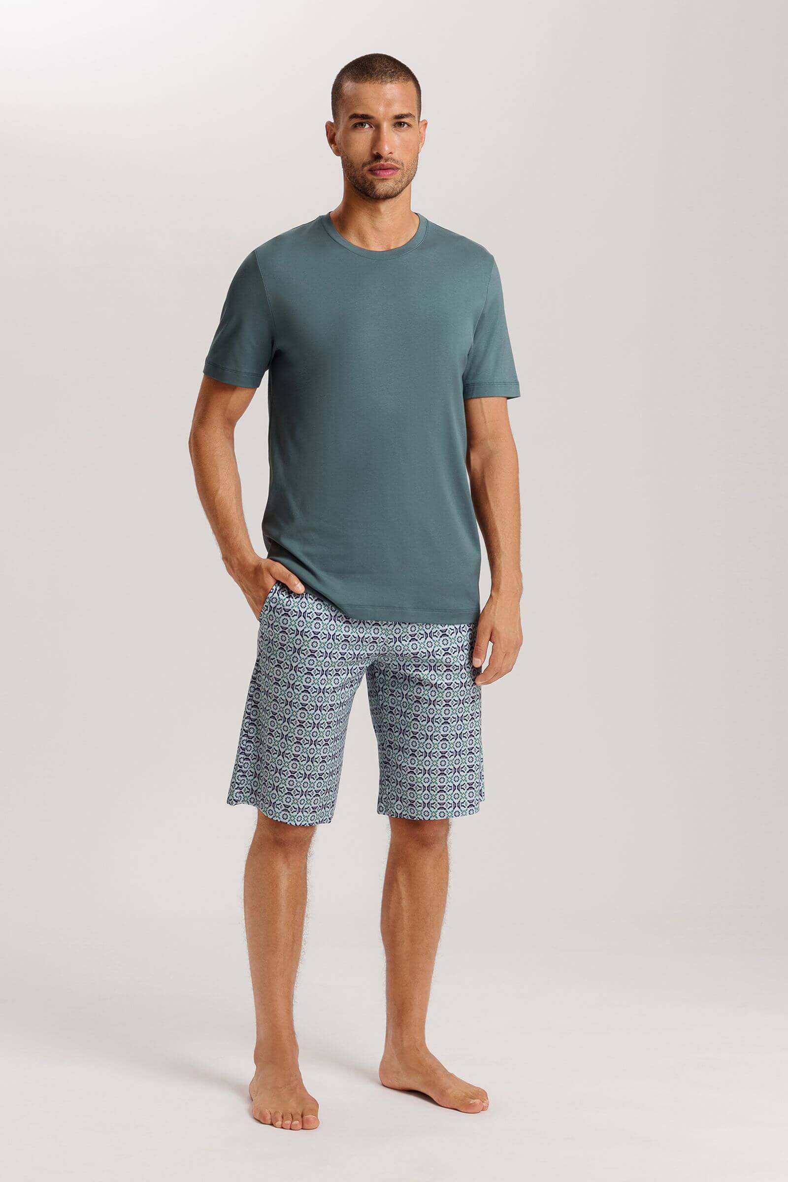 Хлопковая пижама с шортами из коллекции Night & Day прекрасно подойдет в качестве одежды для дома и сна. Пижама состоит из однотонной футболки и шорт с изящным принтом. Низ оснащен эластичным поясом для комфортной посадки. Изделие выполнено из 100% хлопкового интерлока. Стирать в машинке при температуре не более 40ºC.