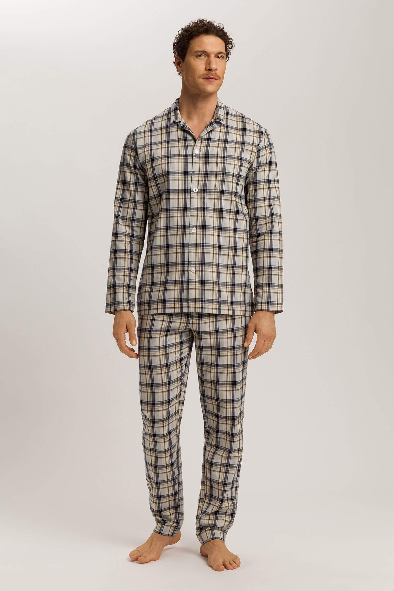 Пижама с длинным рукавом из линейки Cozy Comfort обеспечит вам комфортный и спокойный сон. Ее также можно выбрать в качестве одежды для дома и взять с собой в путешествие. Комплект выполнен из фланели на основе 100% хлопка. Пижама классического кроя дополнена стильными и функциональными деталями: отложным воротником и накладным карманом.