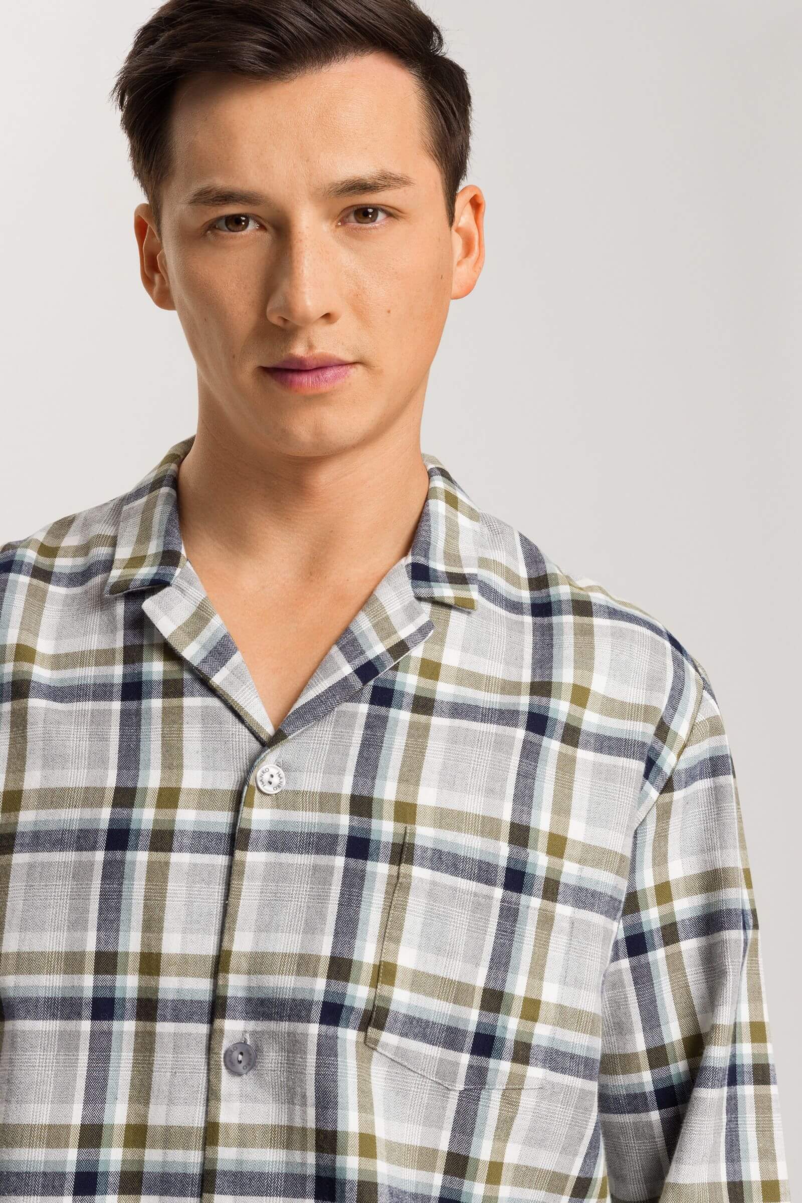 Пижама с длинным рукавом из линейки Cozy Comfort обеспечит вам комфортный и спокойный сон. Ее также можно выбрать в качестве одежды для дома и взять с собой в путешествие. Комплект выполнен из фланели на основе 100% хлопка. Пижама классического кроя дополнена стильными и функциональными деталями: отложным воротником и накладным карманом.