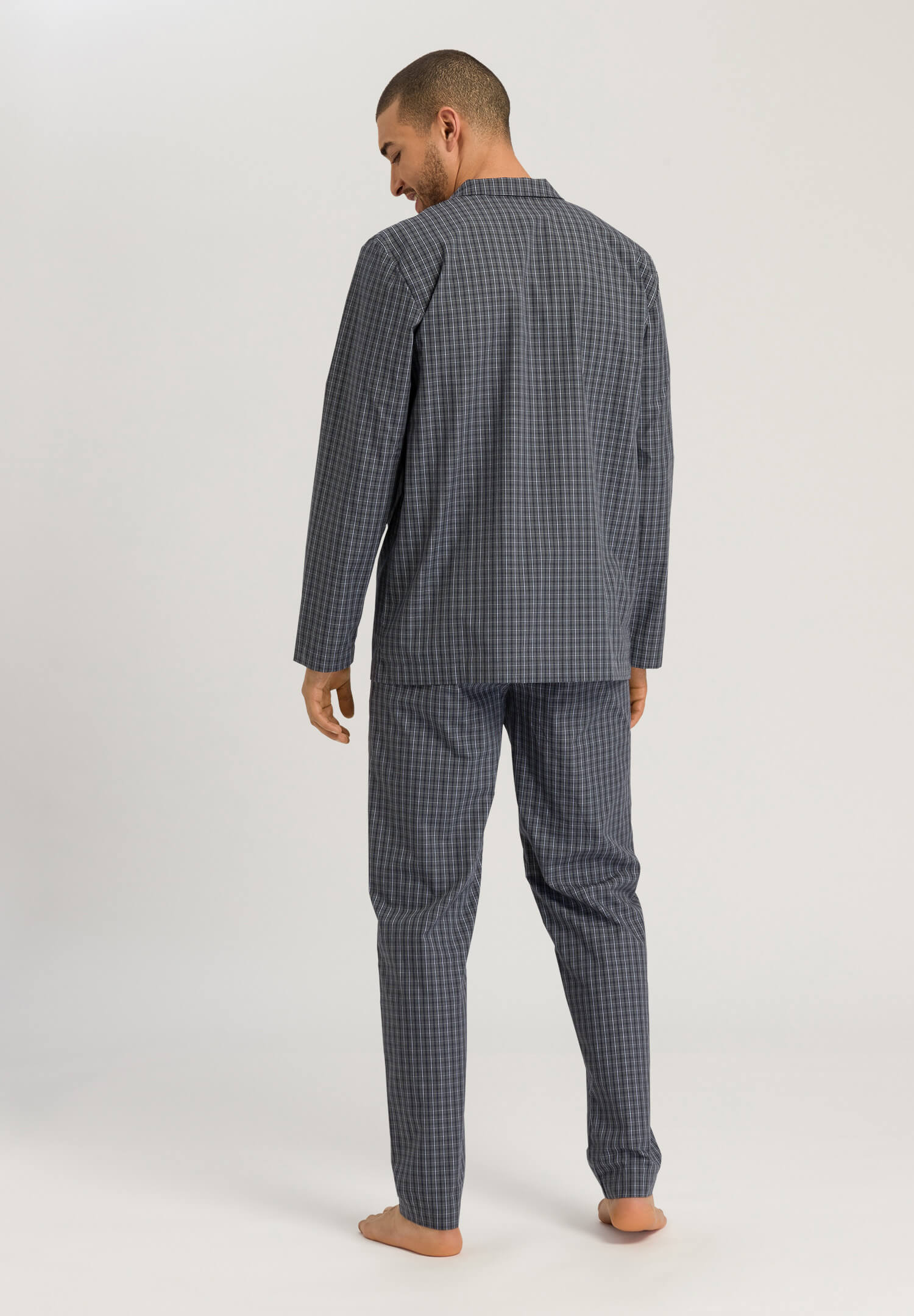Классическая, но в то же время актуальная пижама из коллекции Night & Day выполнена из смеси хлопка и лиоцелла, которая на ощупь напоминает льняной материал. Классический отложный воротник, нагрудный карман и застежка с пуговицами дополняют образ. Удобный эластичный пояс на брюках обеспечивает комфорт.