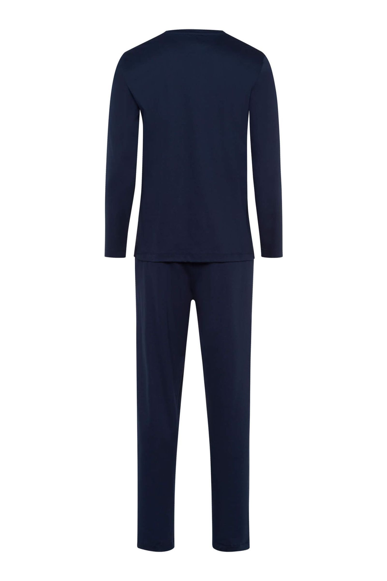 Линейка Night Selection — это роскошная и комфортная одежда для сна. Пижамный комплект из мерсеризованного хлопкового интерлока с легким блеском включает длинные брюки и верх с V-образным вырезом. Пижама темно-синего цвета дополнена карманами на брюках и отделкой кантом в тон.