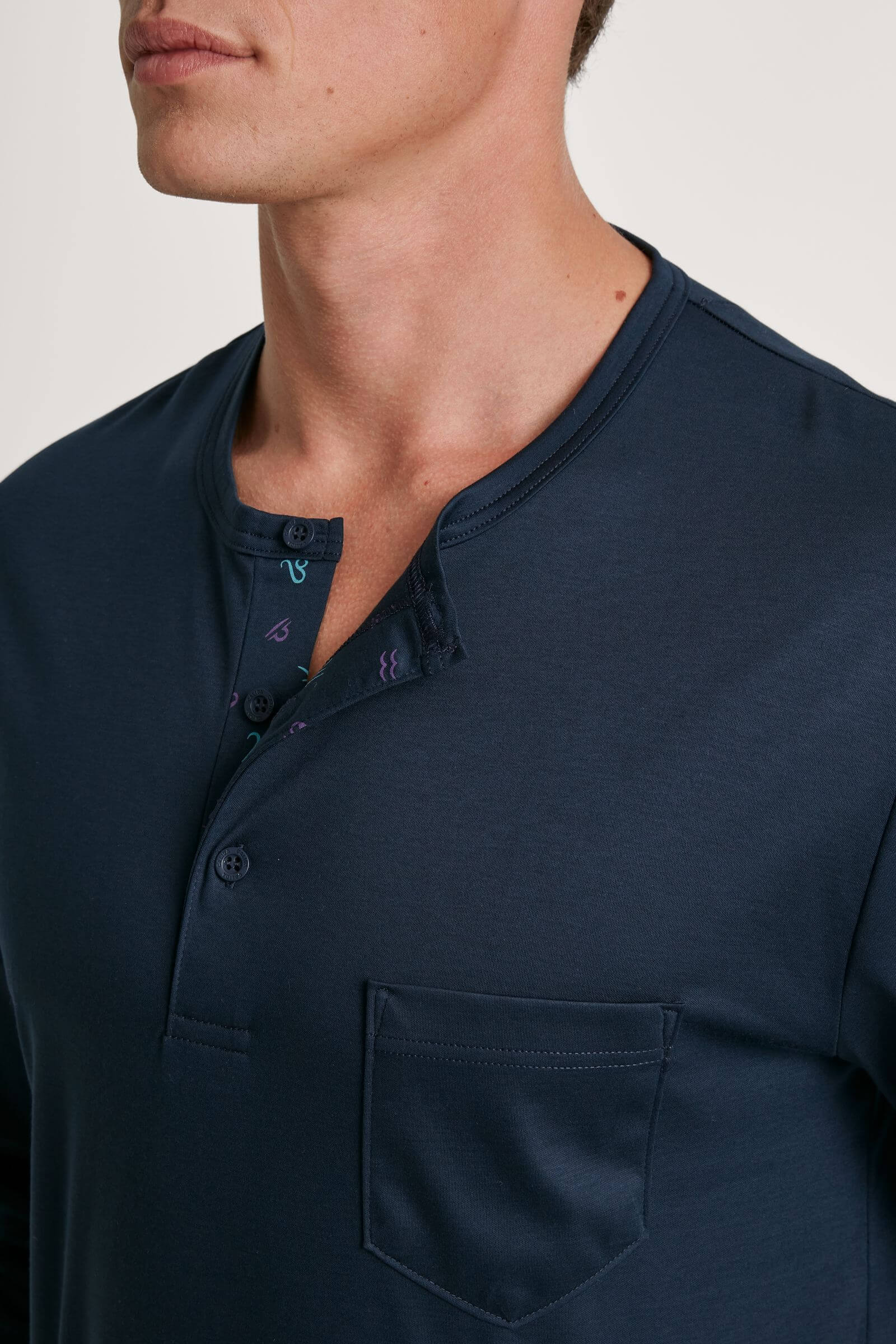 - Круглый вырез-хенли с планкой на функциональных пуговицах
