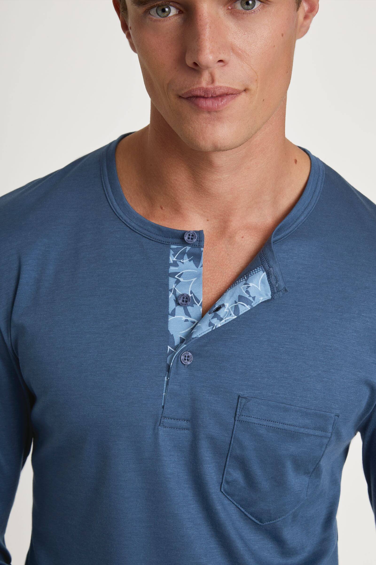 - Круглый вырез-хенли с планкой на пуговицах