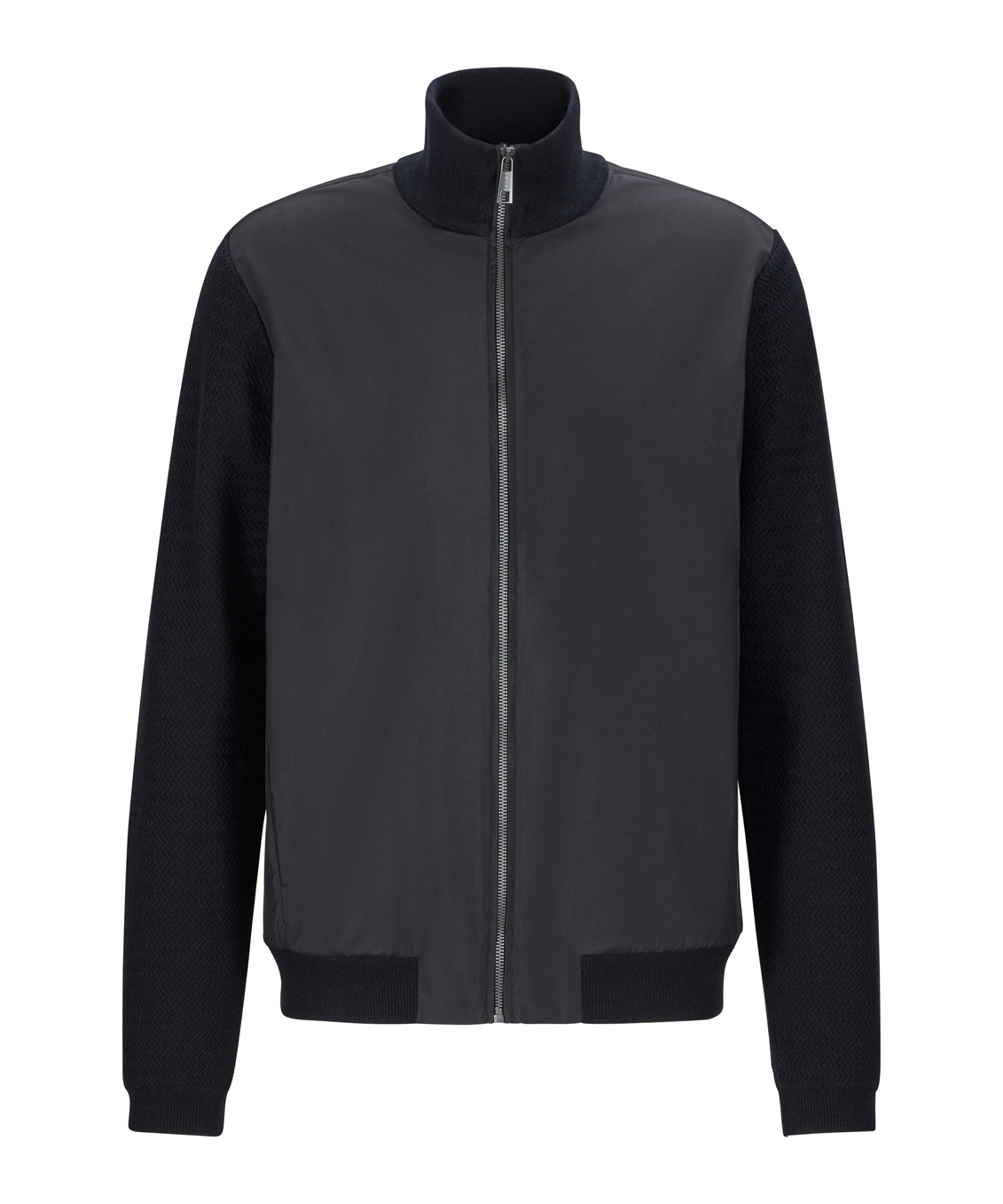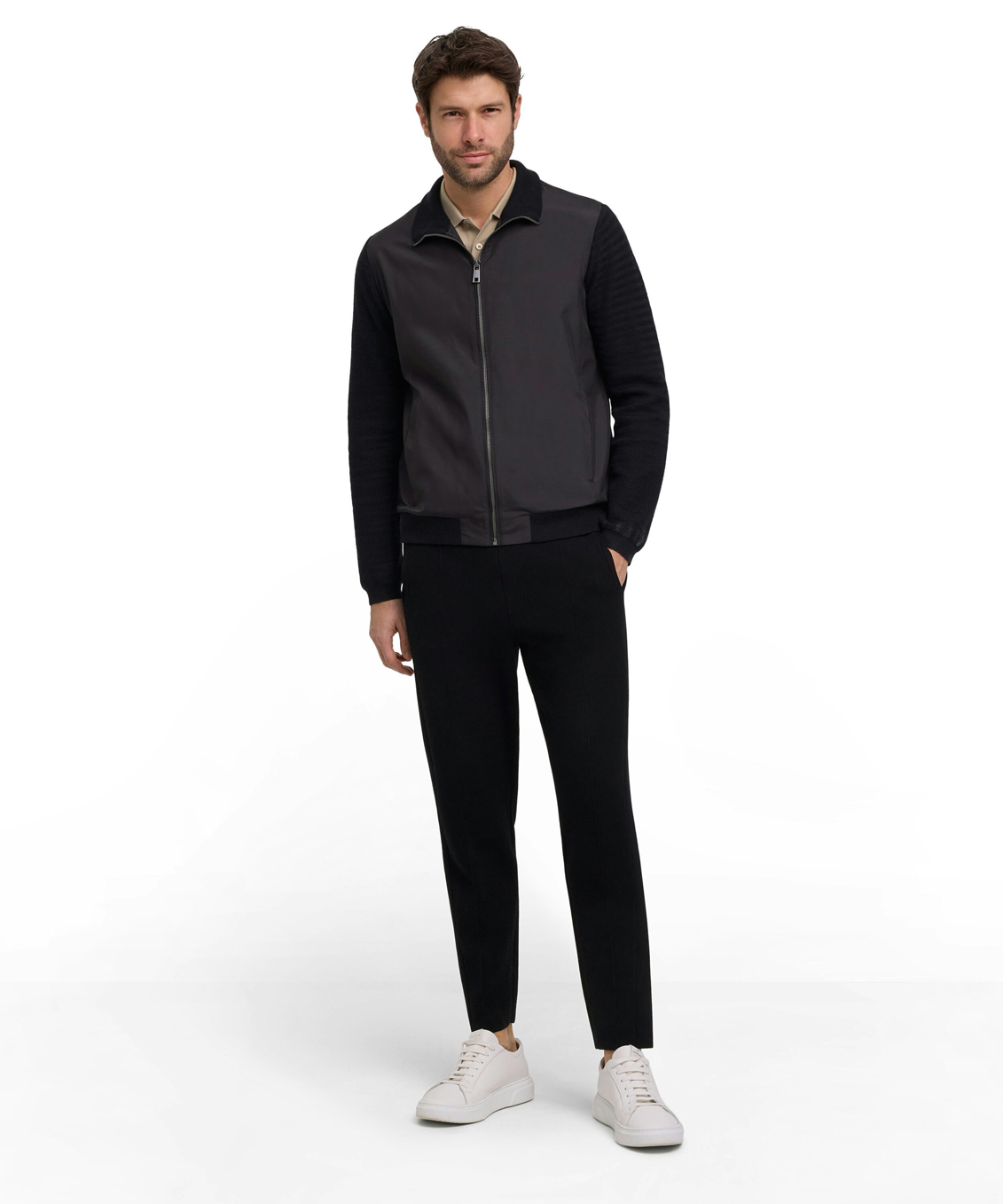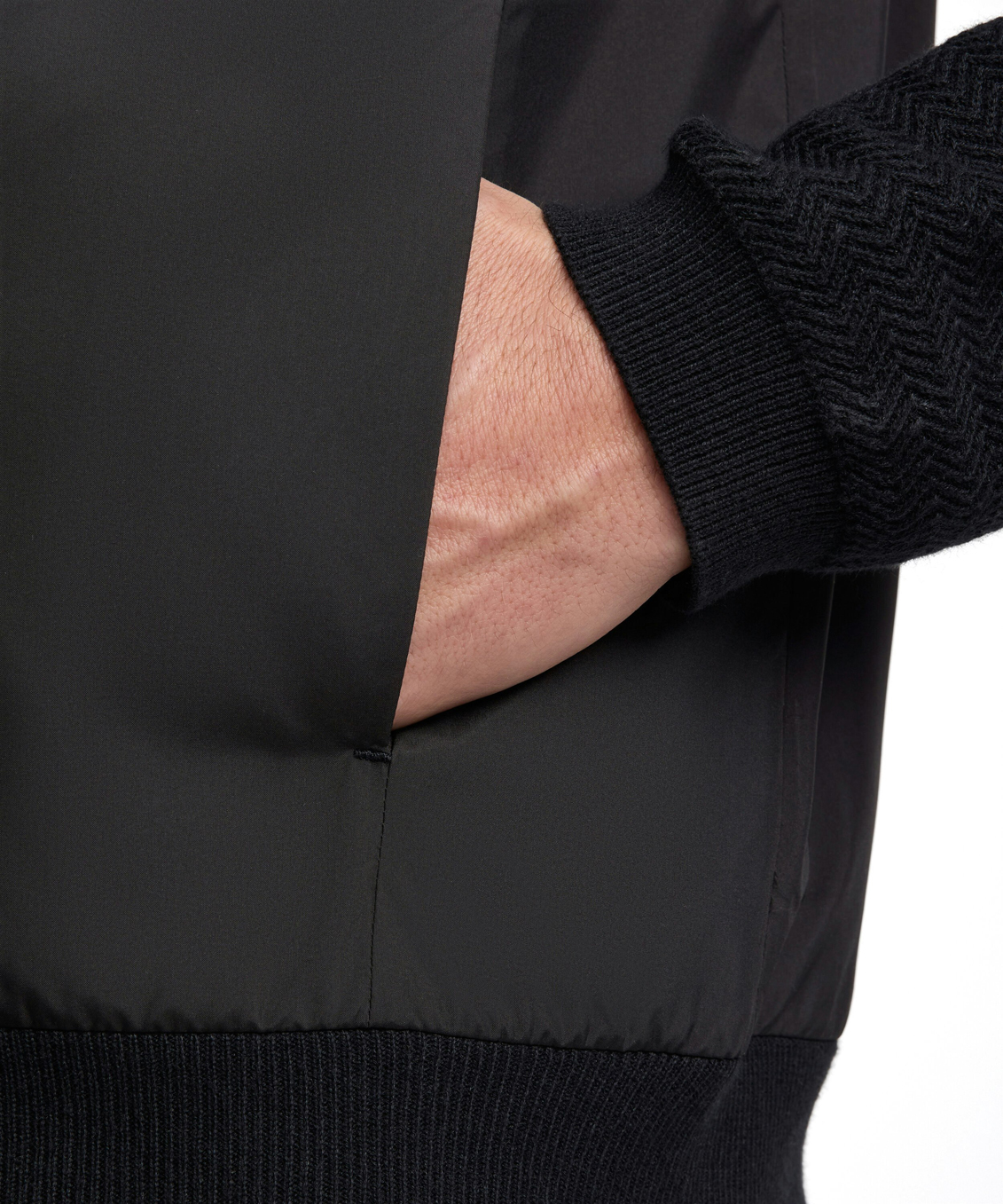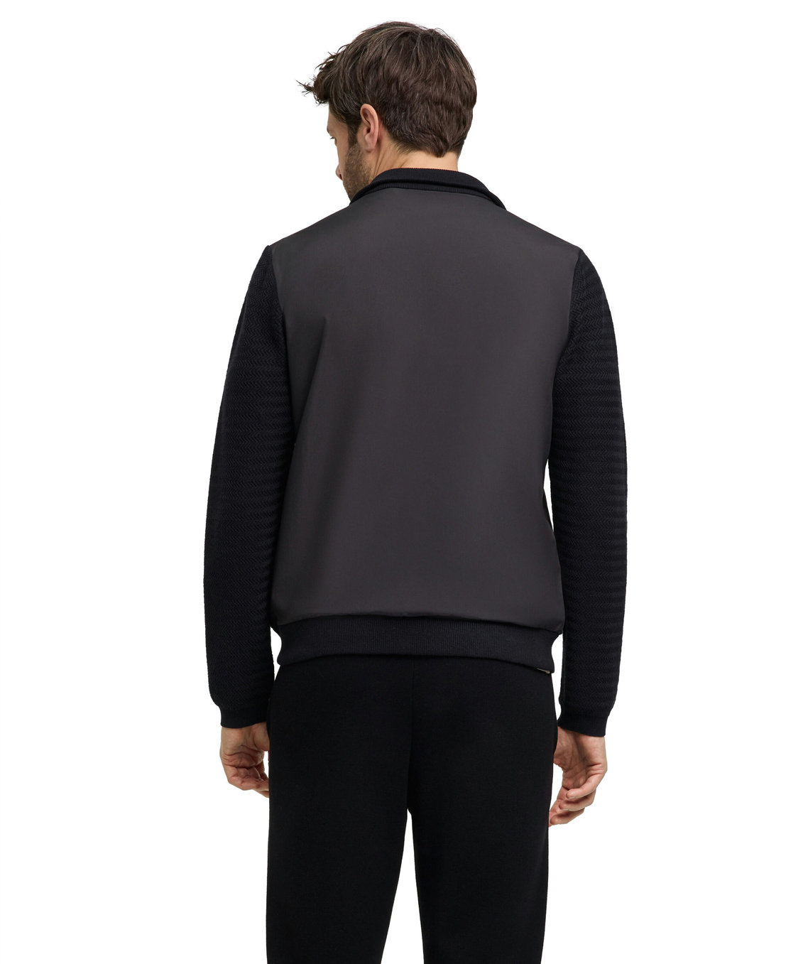 - Модная гибридная куртка из вязаного трикотажа и ткани